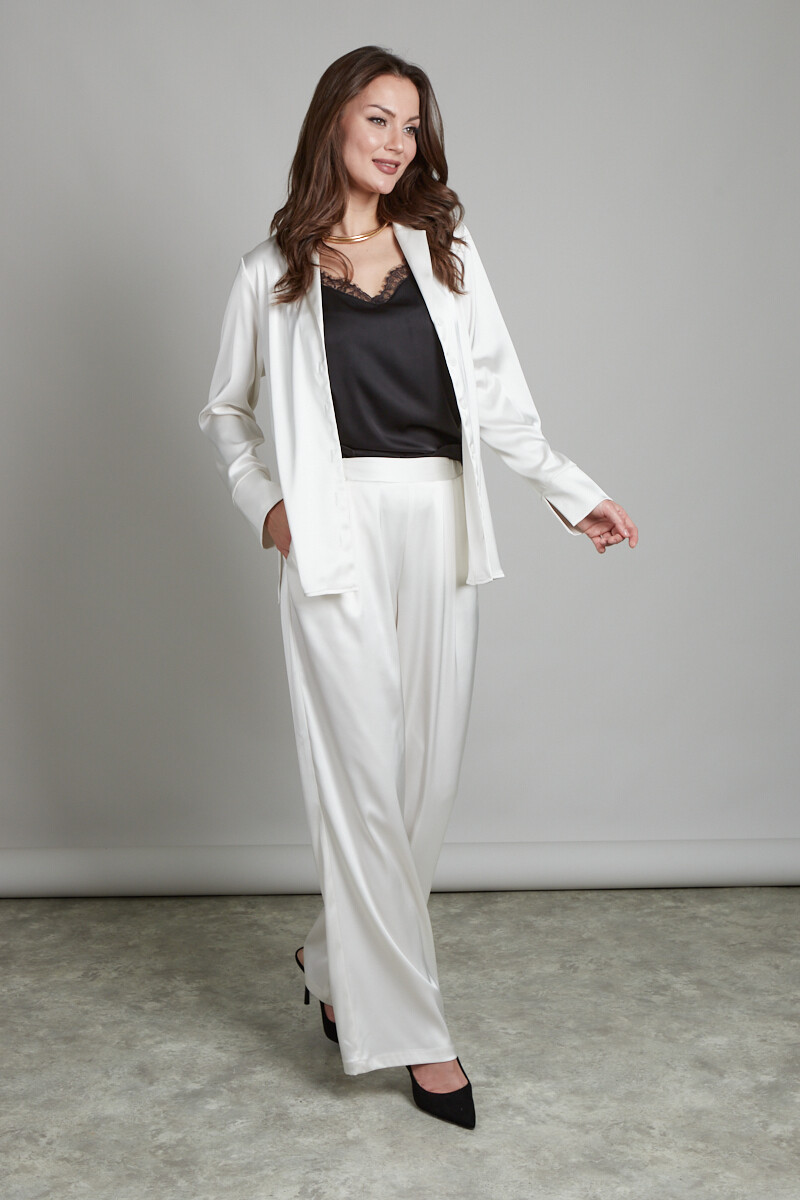 Блуза из атлас-сатина с английским воротничком. Застежка не пуговицы. Низ рукава обработан манжетом с разрезом.