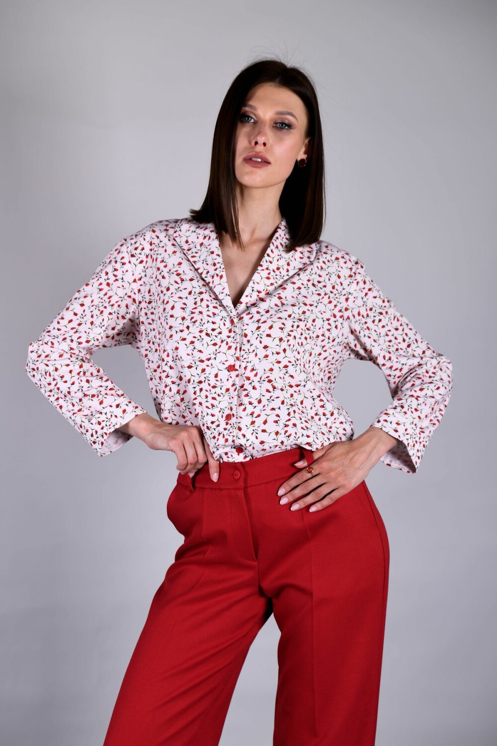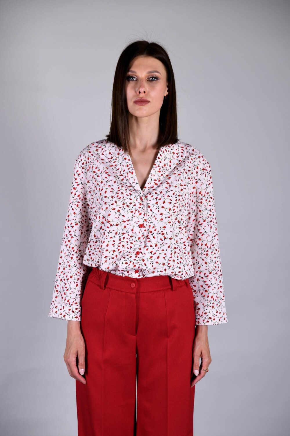 Блузка прямого силуэта на пуговицах. Воротник-апаш, длинный втачной рукав.