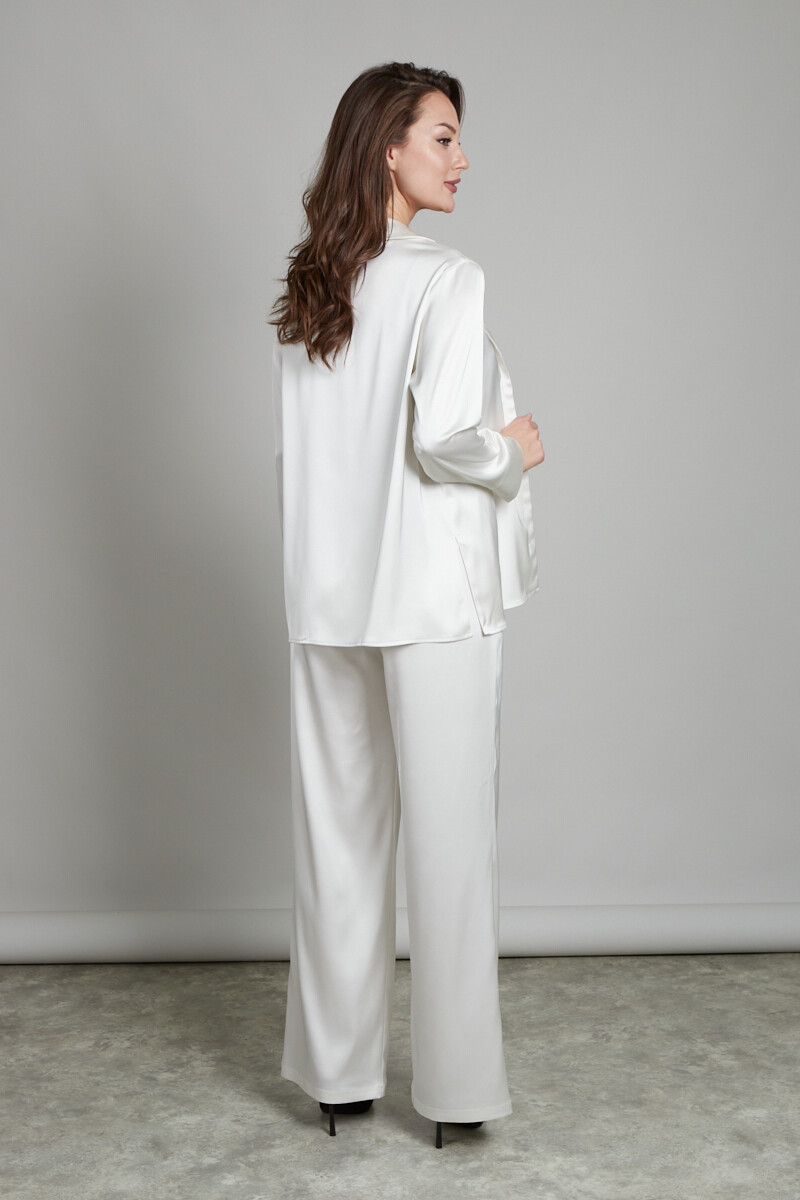Блуза из атлас-сатина с английским воротничком. Застежка не пуговицы. Низ рукава обработан манжетом с разрезом.