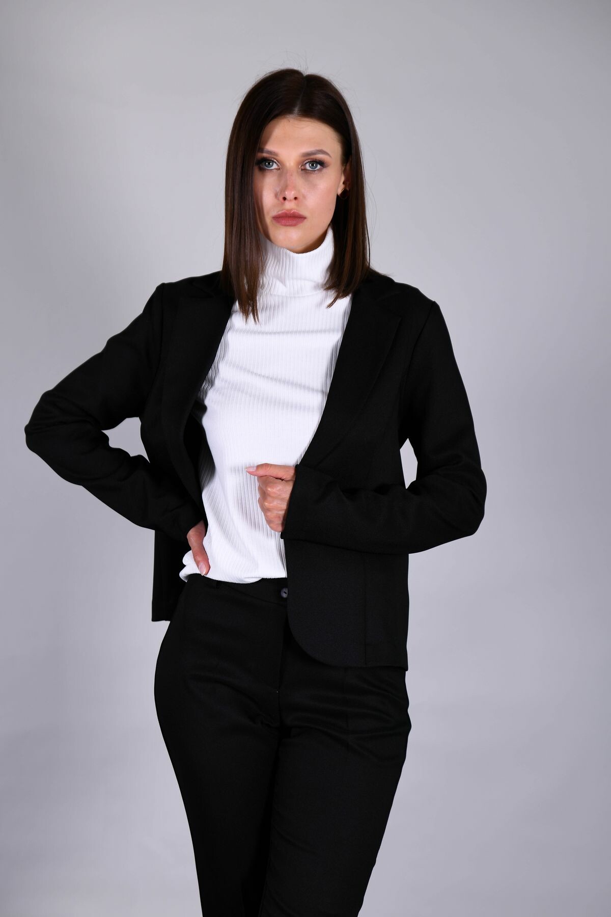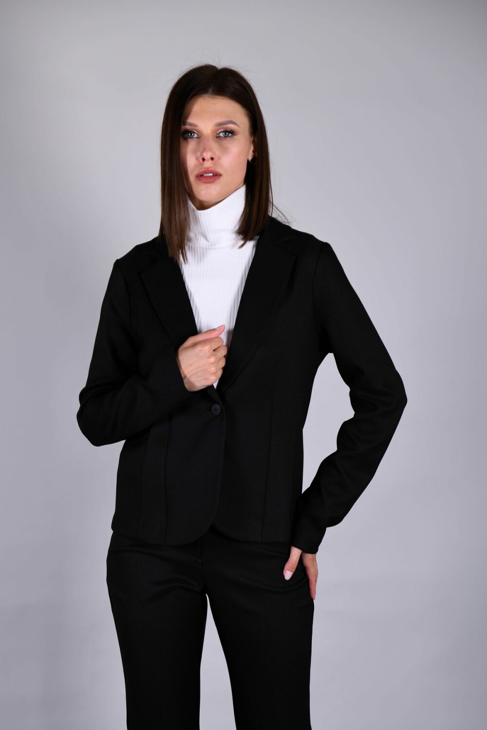 Жакет приталенного силуэта. Застежка на пуговицу спереди.