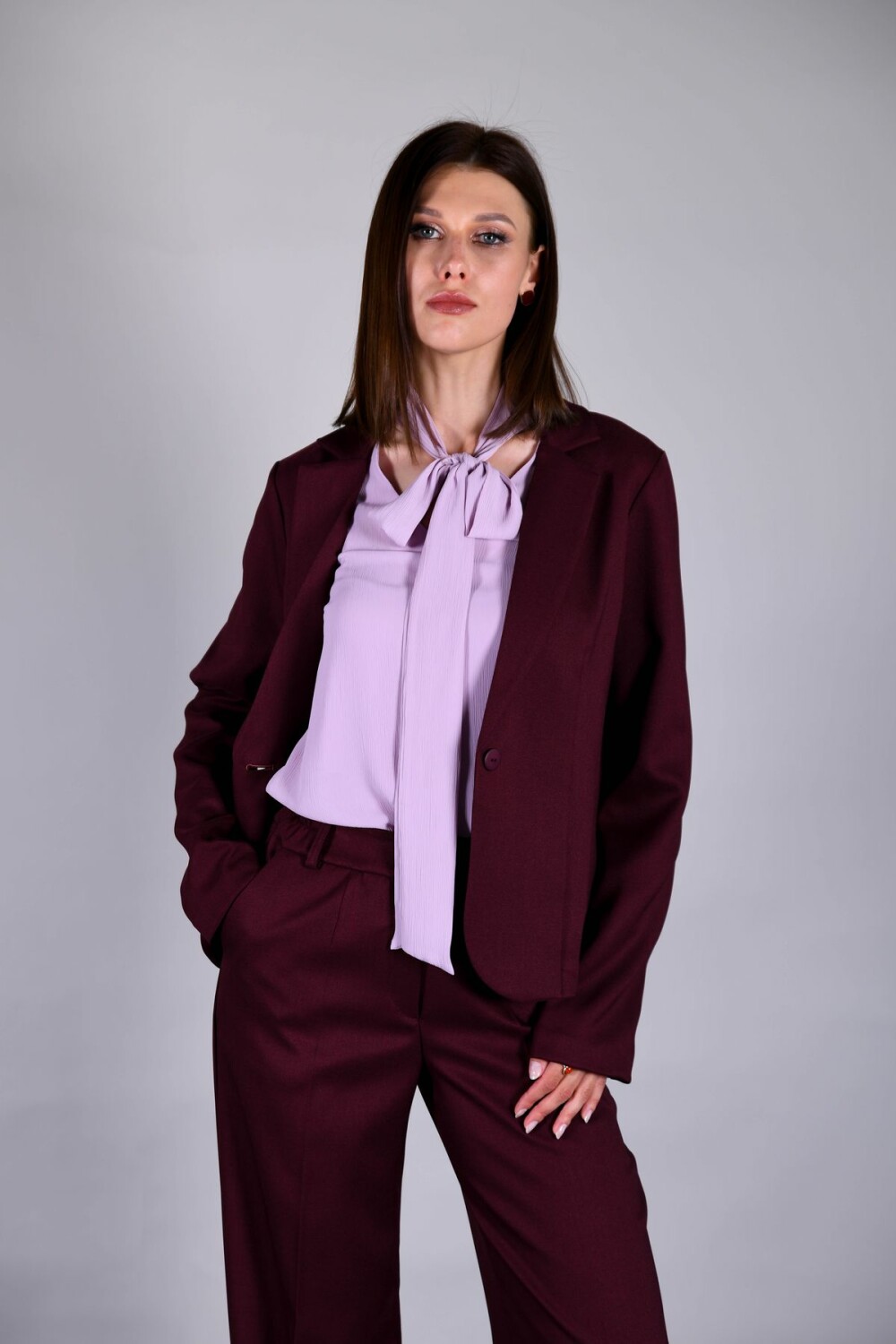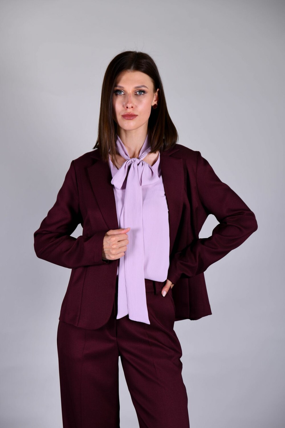 Жакет приталенного силуэта. Застежка на пуговицу спереди.