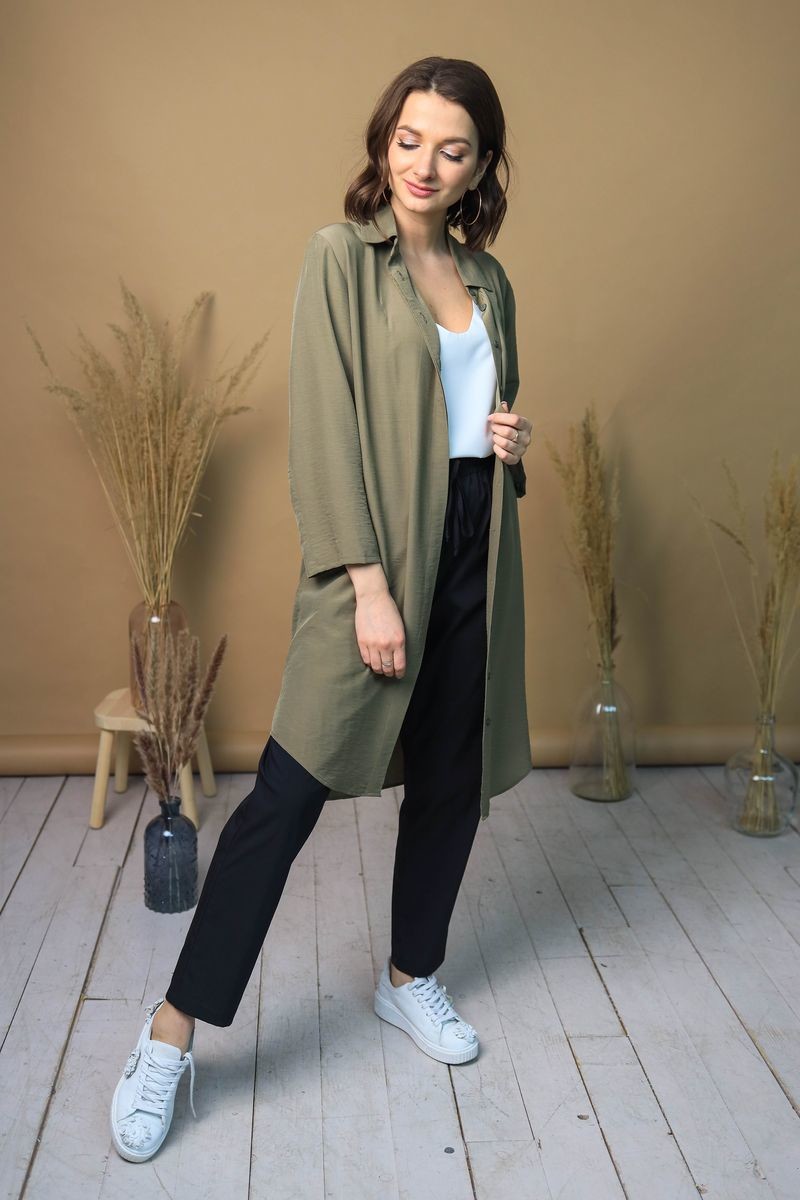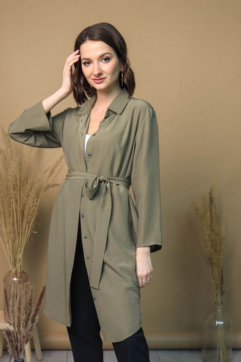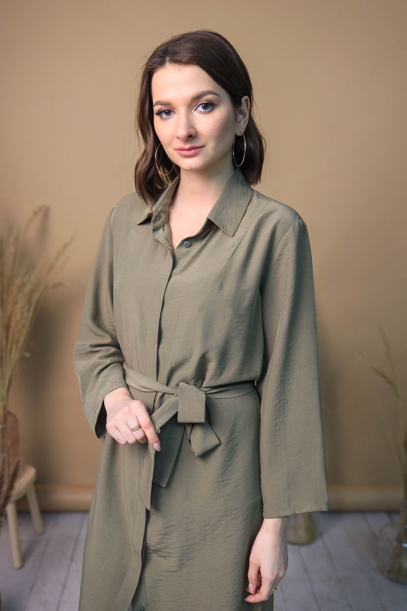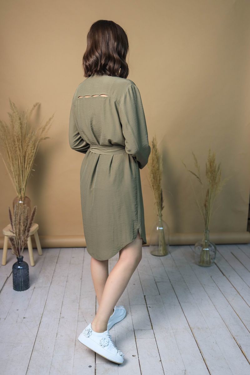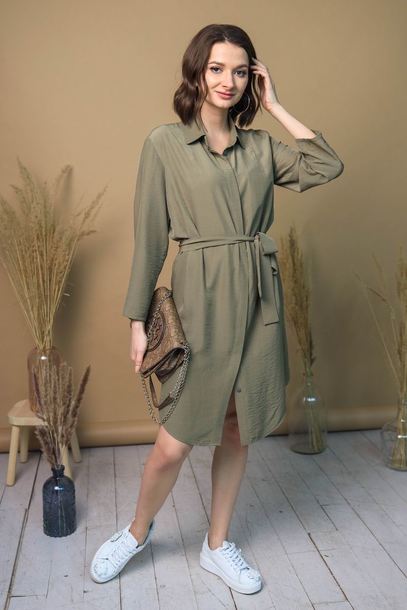 Платье-рубашка на пуговицах. Отложной воротник, низ модели закруглен.