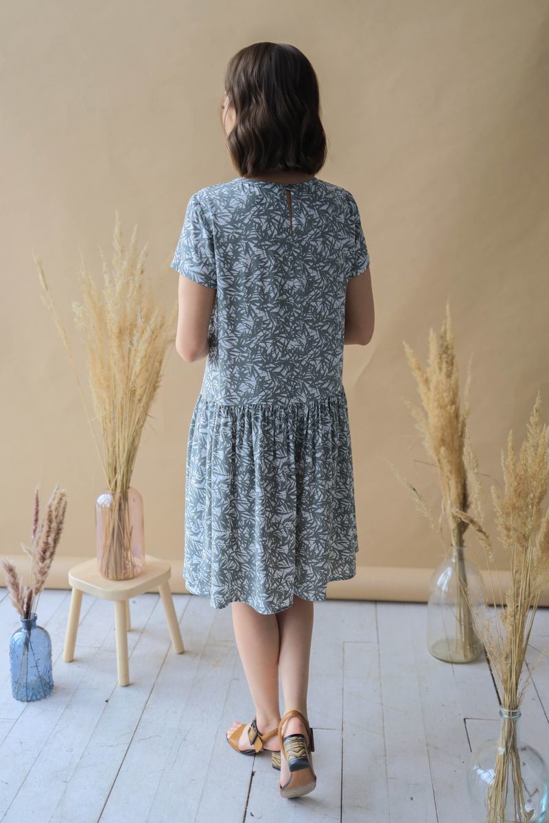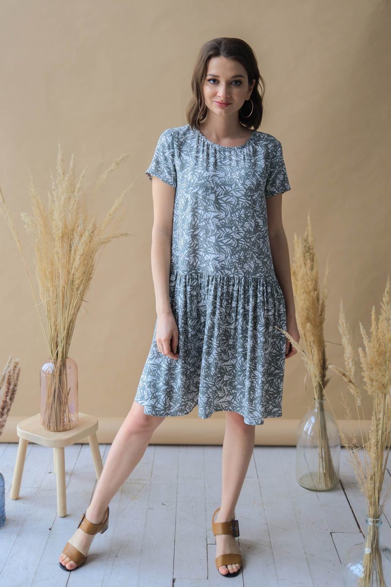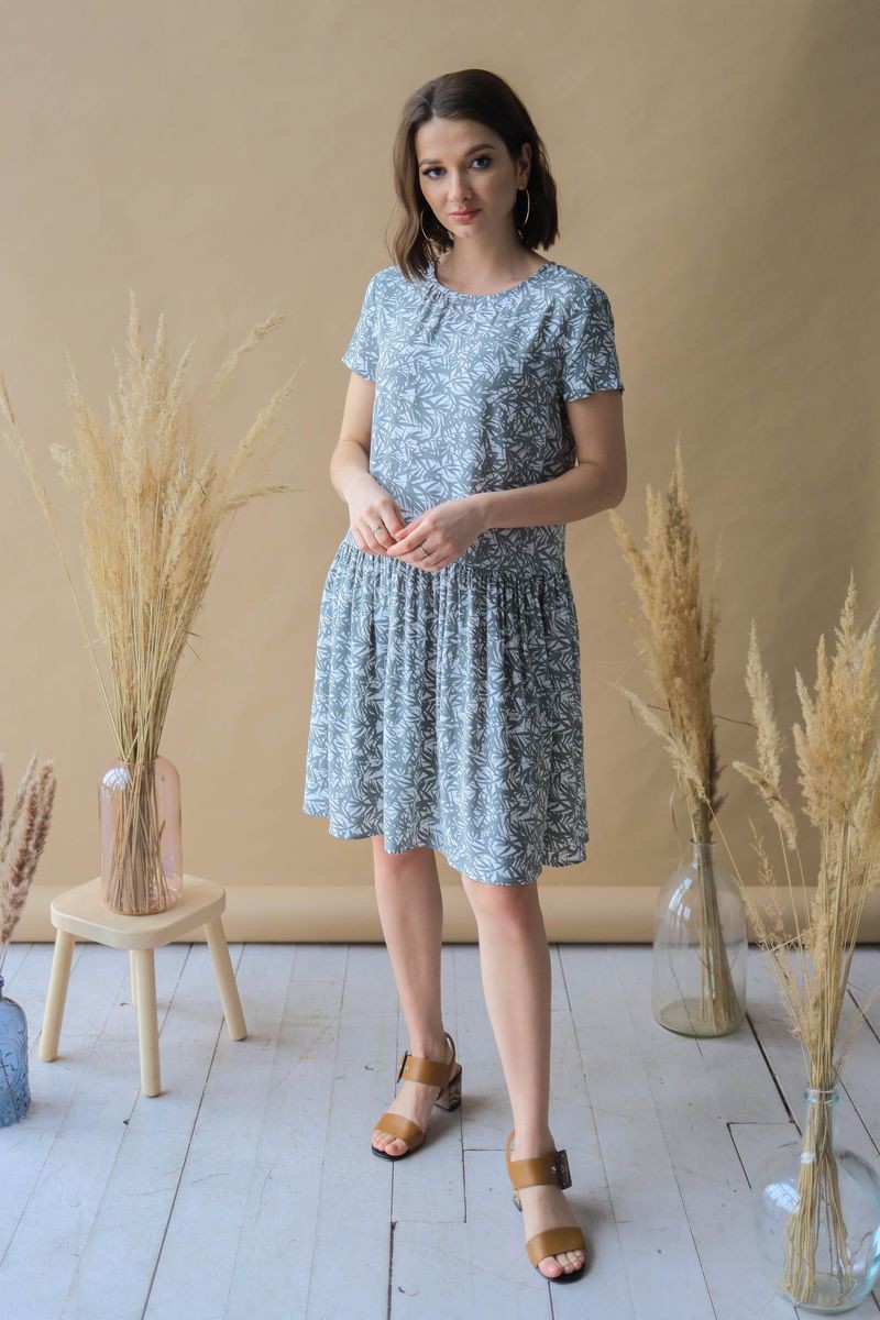 Платье свободного силуэта, отрезное по талии, Юбка чуть присборена по шву.