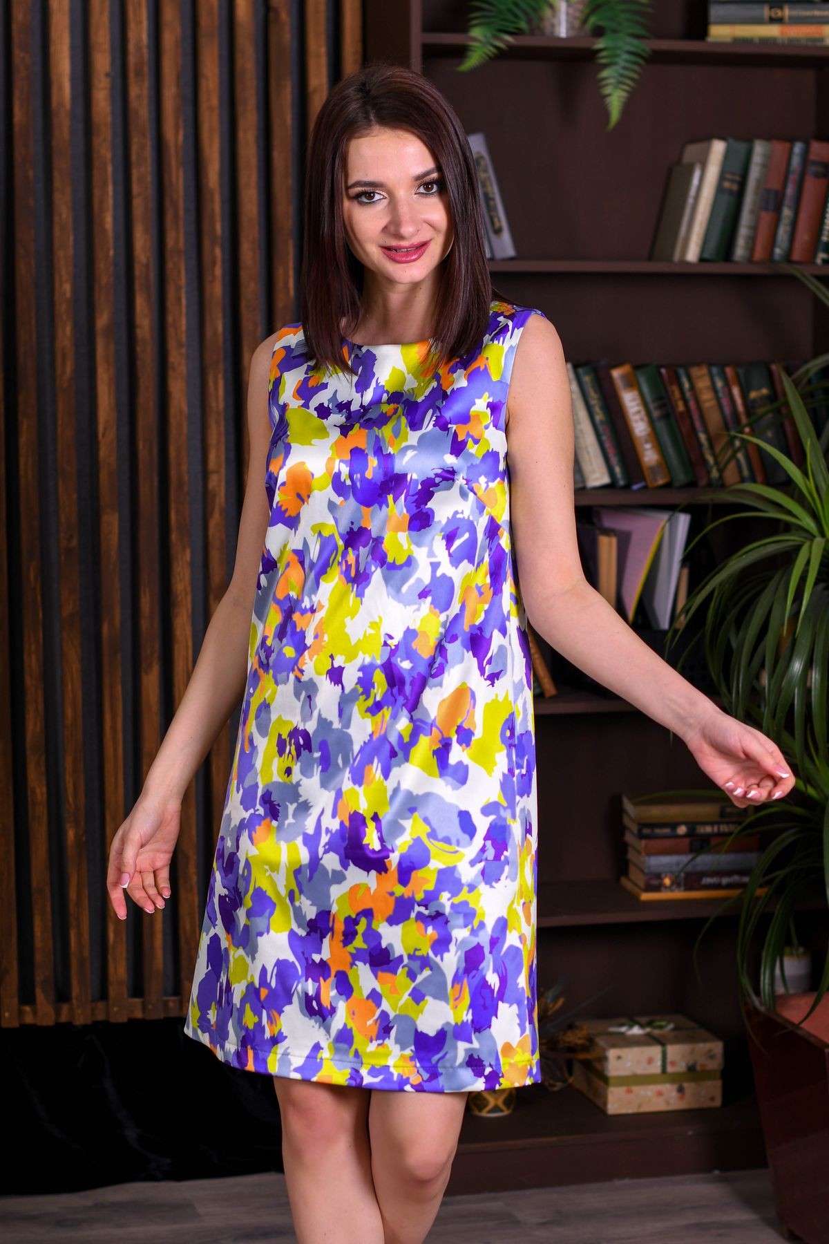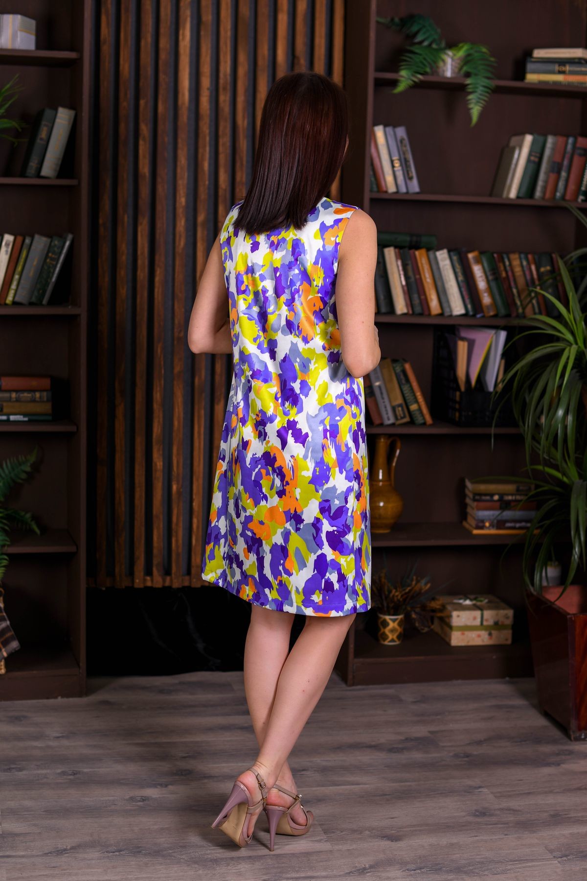 Платье А-силуэта без рукавов. Застежка на потайную молнию на спинке.