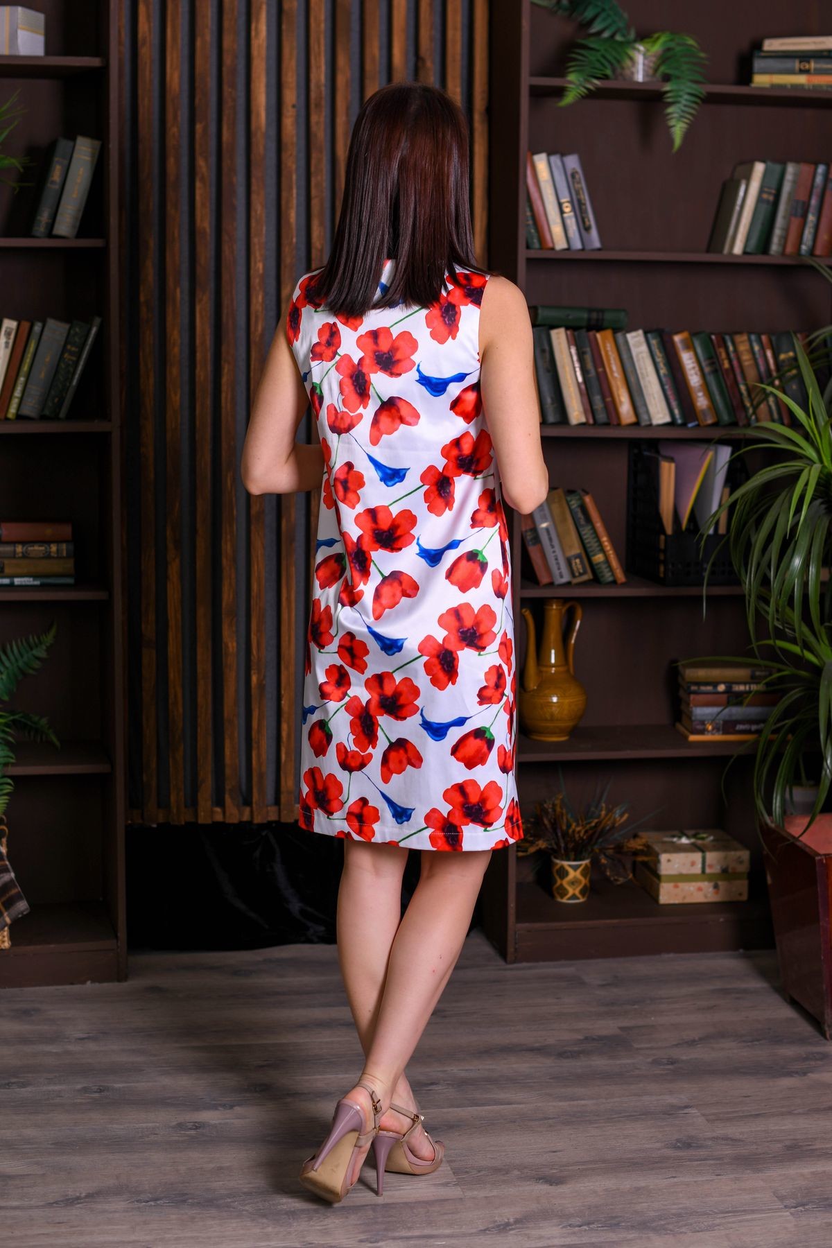 Платье А-силуэта без рукавов. Застежка на потайную молнию на спинке.