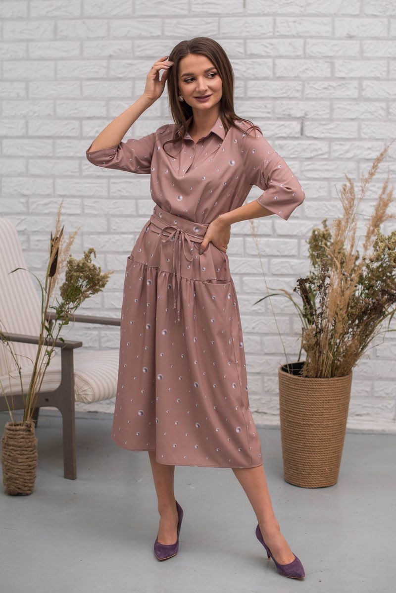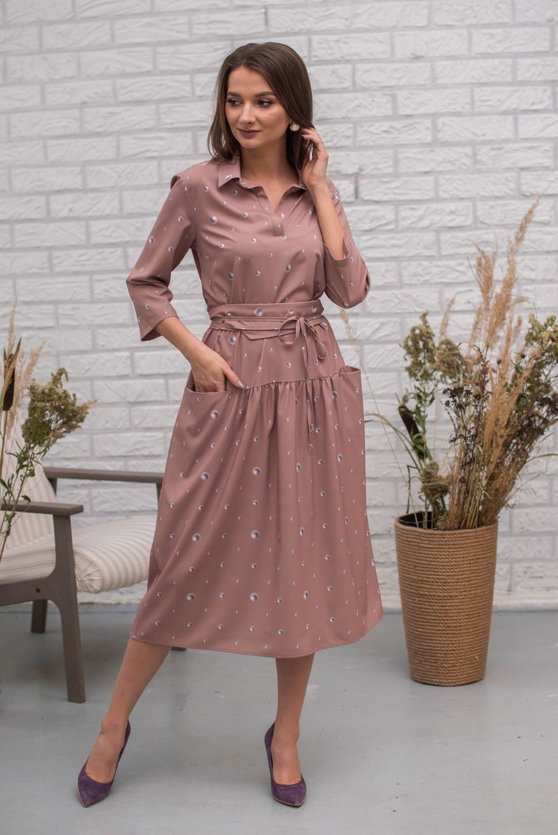 Платье свободного силуэта. Модель с заниженной линией талии, отрезная юбка чуть присобрана по шву. Есть карманы. В комплекте пояс-кушак из основного полотна.