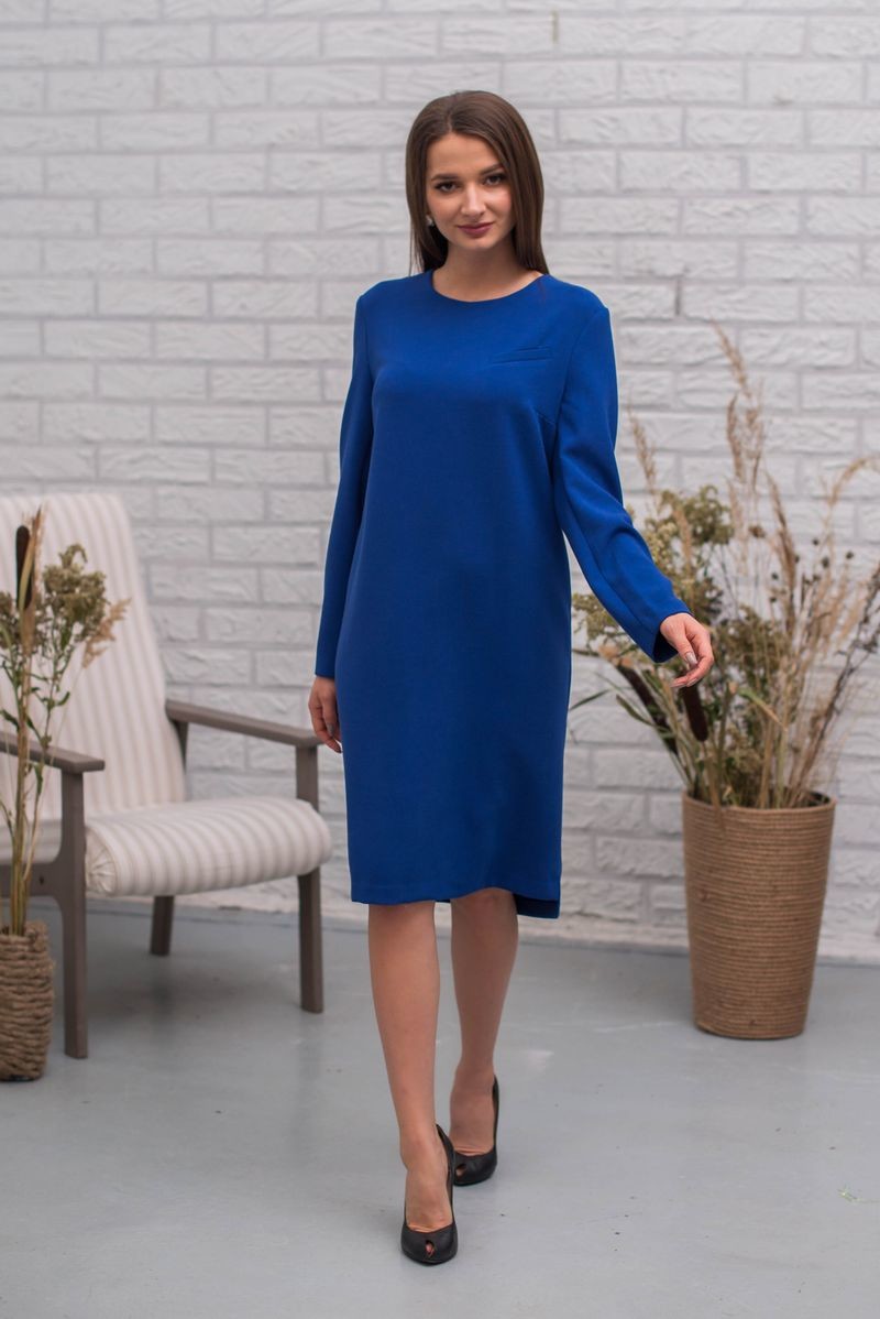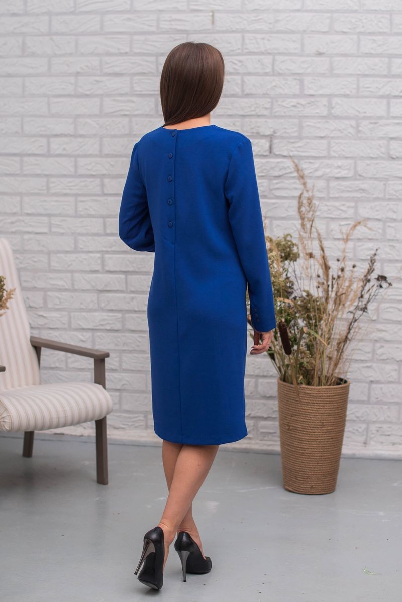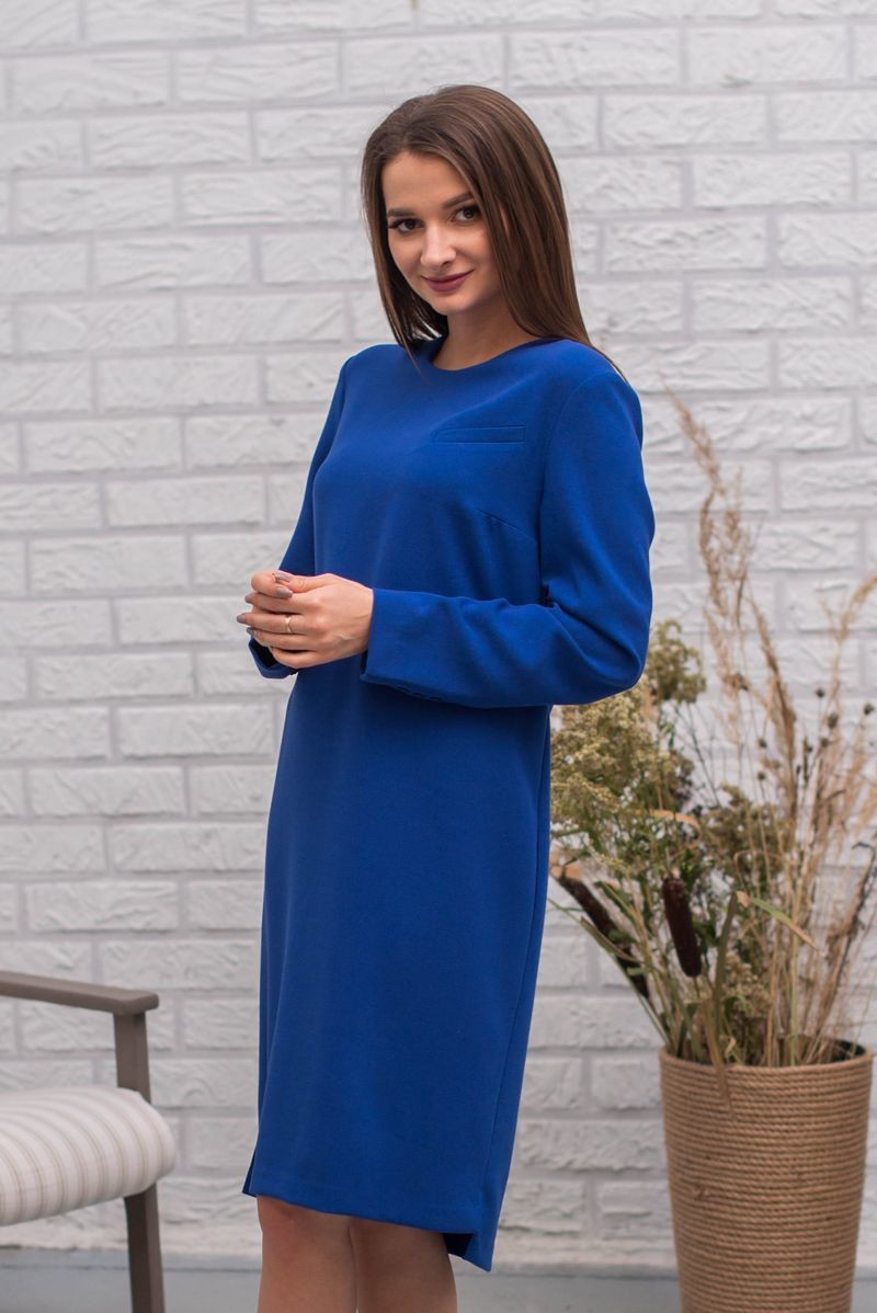 Платье прямого силуэта с длинным рукавом. Втачной рукав, застежка на спинке на пуговицы. Имитация кармашка на полочке.